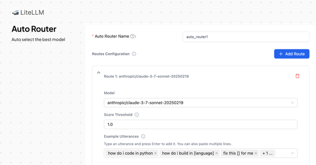 - Auto Router Name - The model name that developers will use when making LLM API requests to LiteLLM